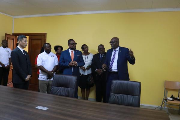邦戈大学孔子学院中方院长吴宁先生和加方院长奥沃诺先生带领来宾参观孔子学院,分别介绍了孔子学院的办学历史、办学理念和办学使命。