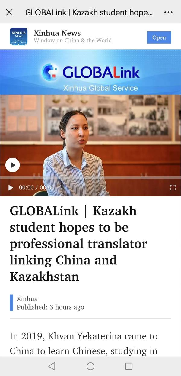 7月2日,国家主席习近平抵达阿斯塔纳,出席上海合作组织成员国元首理事会第二十四次会议并对哈萨克斯坦进行国事访问。同一时间,新华社英文客户端刊发了对开云手机平台_开云(中国)哈萨克斯坦留学生黄琳娜的视频采访。