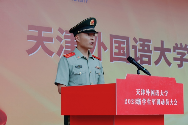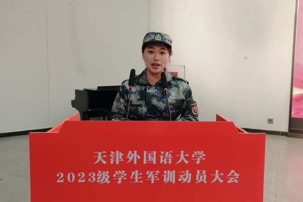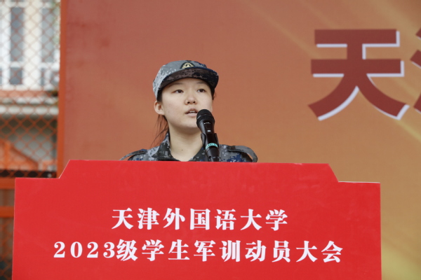 英语学院学生于清涵和国际商学院学生冯思思代表2023级全体参训学员发言并作出庄严承诺,在接下来的21天训练中,要坚决服从命令、听从指挥;尊重教官、团结同学;严守纪律、遵守规章;吃苦耐劳、勤学苦练,以优异的训练成绩践行自己的责任与担当。