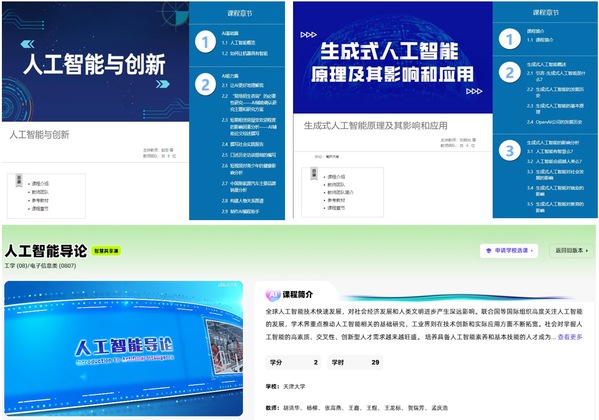 课程内容涵盖人工智能的基本概念、发展历史、核心技术及其在不同领域的应用。课程目标在于让学生了解人工智能的基础知识、基本概念、基础技术、常见工具平台和典型应用场景,探索人工智能和大模型在文学、法学、管理学、经济学、教育学、艺术学等学科中的应用,以拓展学生对人工智能的认知,并助力学生了解和运用人工智能的相关技术。