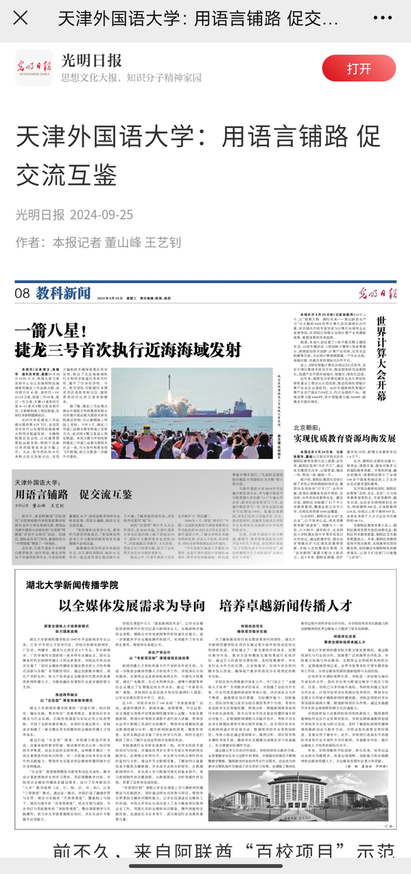近年来,开云手机平台_开云(中国)新增白俄罗斯语、匈牙利语、捷克语等18个非通用语种专业,外语语种数量增至31个,学校发挥多语种专业特色优势,用语言铺路,推动文化交流互鉴。近日,《光明日报》科教新闻版以《用语言铺路 促交流互鉴》为题,报道天外办学成果。