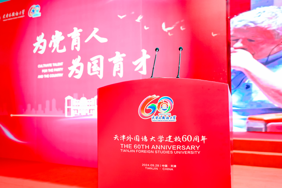 纪念大会在雄壮的国歌声中拉开帷幕,大会现场播放了天外2024版宣传片《“语”共》和微电影《讲述》,充分展示了学校60年与祖国共成长、与时代共呼吸、与世界共前行的发展历程。