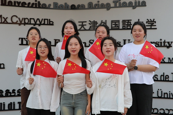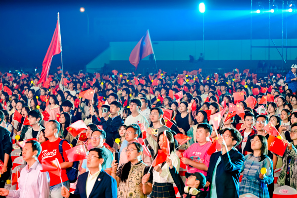 “五星红旗迎风飘扬,胜利歌声多么响亮”,熟悉的旋律在耳边响起,3000余名天外人高声齐唱《歌唱祖国》,气势磅礴、激情澎湃,那是对祖国最深情的告白;手中飘扬的五星红旗,汇聚成一片红色的海洋,传递出天外人对祖国大好河山的无限热爱。