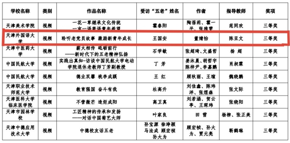 由国际关系学院董婧怡拍摄的微视频《聆听老党员故事,激励新青年成长》获得视频类三等奖。