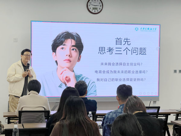 本次活动邀请了天津市人力资源和社会保障局特聘天津市大学生创业导师、天津市开放大学项目创新培训部主管李伟,围绕“直播电商·机遇与未来”主题开展了创新创业沙龙分享活动。