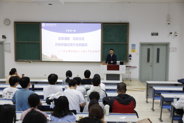 校领导在授课中,围绕学习党的二十届三中全会精神,不断深化改革,奋力谱写中国式现代化天津篇章,以及学校贯彻落实党的二十届三中全会精神聚力奋进的具体举措等进行了详细讲解,深入阐释了党的二十届三中全会精神中关于进一步全面深化改革推进中国式现代化的重大意义和总体要求、关于进一步全面深化改革的总目标,对完成全会提出的改革任务时间点以及经济牵引下的全面部署实施方略进行了详细解读,并就其中的教育、科技、人才作为中国式现代化的基础性、战略性支撑做了详细阐述,系统分析了推进教育科技人才体制机制一体改革,提升国家创新体系整体效能的远景规划,帮助学生了解了教育强国的重要内涵,加深了同学们对专业发展前景的了解。