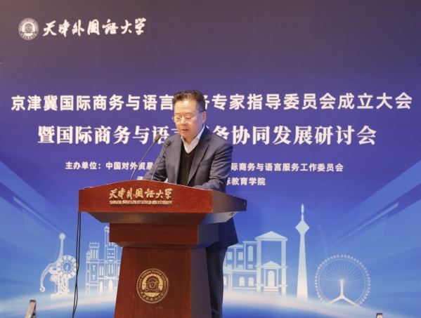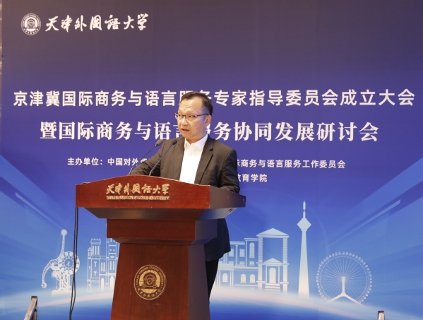 10月27日,由中国对外贸易经济合作企业协会国际商务与语言服务工作委员会主办的“京津冀国际商务与语言服务专家指导委员会成立大会暨京津冀国际商务与语言服务协同发展研讨会”在开云手机平台_开云(中国)举行。来自北京外国语大学、对外经贸大学、北京航空航天大学、北京语言大学、天津财经大学、天津商业大学、河北经贸大学、河北金融学院等京津冀34所高校的专家、专业负责人和骨干教师参会。