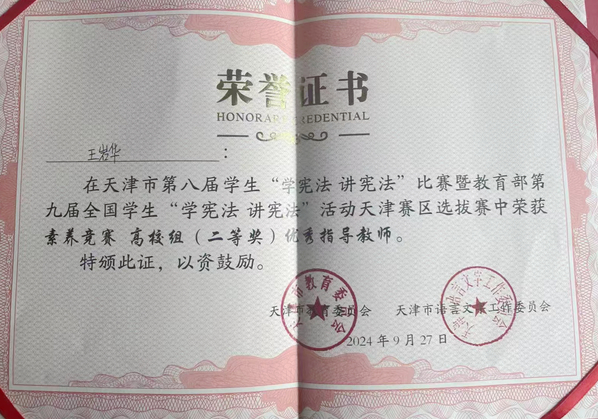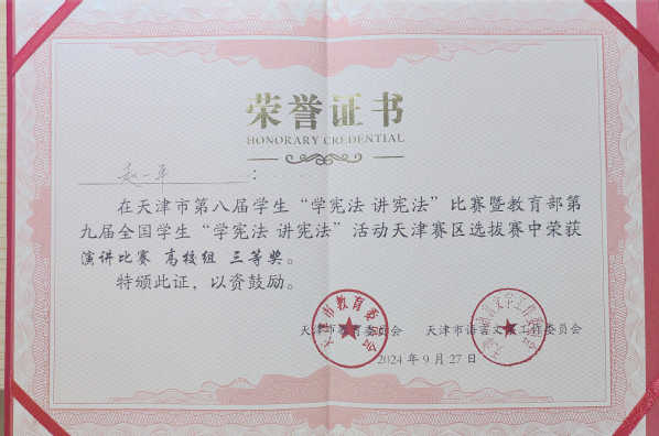 近日,由天津市教育委员会、天津市语言文字工作委员会主办,天津理工大学承办的天津市第八届学生“学宪法 讲宪法”比赛暨教育部第九届全国学生“学宪法 讲宪法”活动天津赛区选拔赛闭幕。