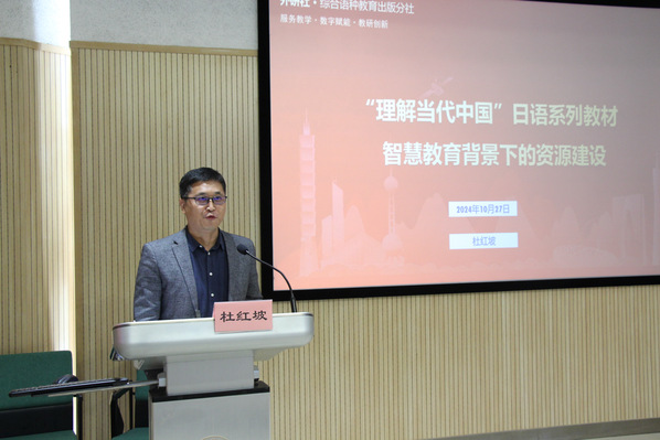 杜红坡以《“理解当代中国”日语系列教材在智慧教育背景下的资源建设》为题进行发言,探讨了在智慧教育的大背景下,如何有效利用现代信息技术来创建和优化教学资源,以提升教学效果和改善学生的学习体验。