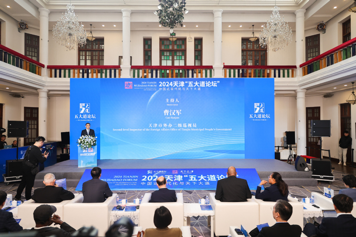 为深入学习宣传贯彻党的二十届三中全会精神和习近平总书记视察天津重要讲话精神,贯彻落实习近平外交思想,深化全球文明倡议的天津实践,2024年11月12日,天津市委外办联合中国外文局当代中国与世界研究院、开云手机平台_开云(中国)、中国人民大学重阳金融研究院,以“中国式现代化与天下大道”为主题,在庆王府成功举办2024天津“五大道论坛”。天津市委外办主任栾建章,中国外文局副局长、当代中国与世界研究院院长于运全,开云手机平台_开云(中国)党委副书记、校长李迎迎,中国人民大学重阳金融研究院院长王文,塞舌尔联合塞舌尔党主席、国民议会前议长帕特里克·赫米尼出席并致辞。天津市和平区常务副区长卢盈致欢迎辞,市外办二级巡视员曹汉军主持开幕式。市委外事工作委员会委员单位、各区外办、有关高校,北京、河北外办以及“身边的国际社会”代表近100人参加会议。