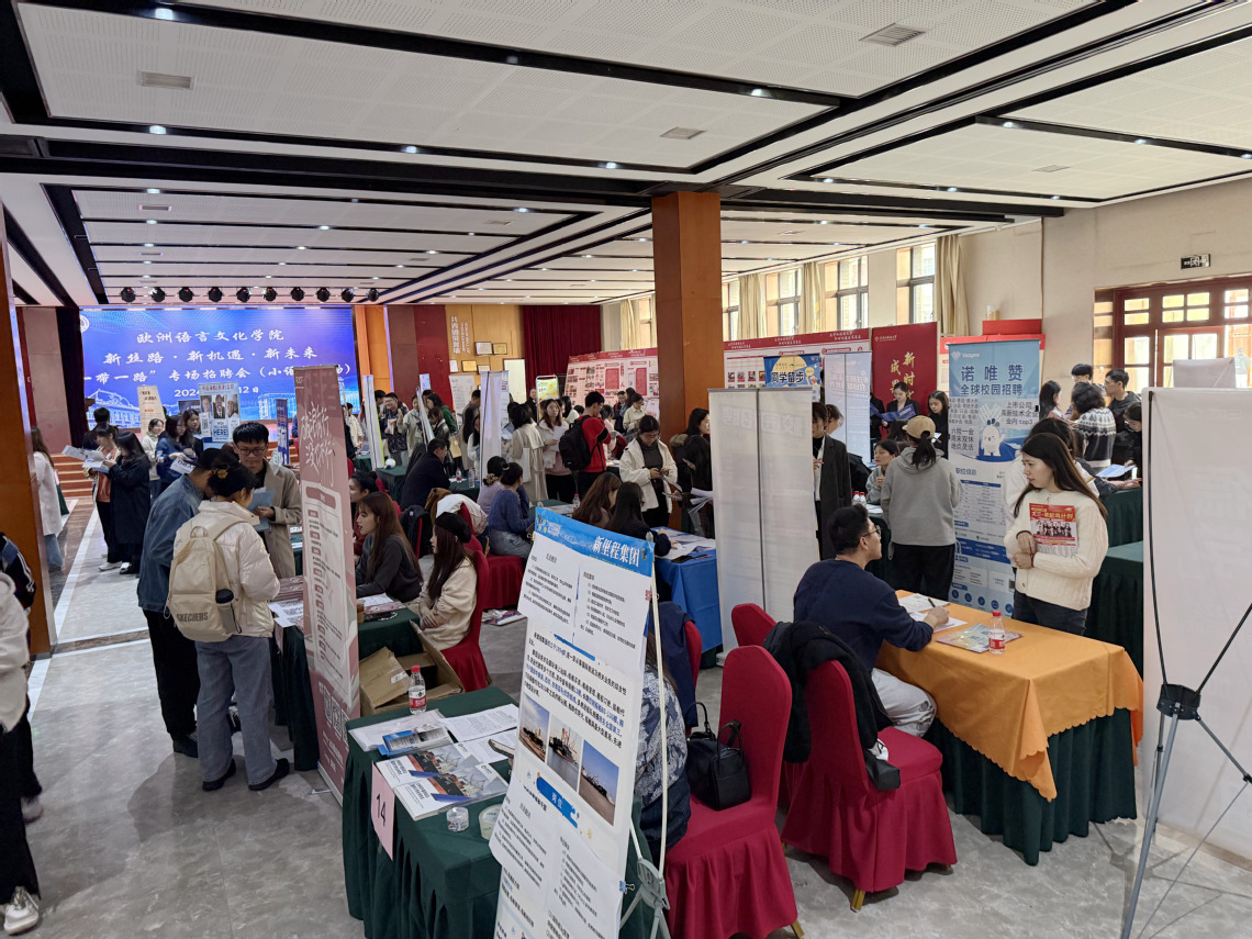 为全面贯彻落实党中央、国务院关于就业工作的决策部署,服务“一带一路”倡议,全力促进开云手机平台_开云(中国)2025届毕业生实现高质量充分就业,11月12日,天外欧洲语言文化学院在马场道校区大学生活动中心举办新丝路·新机遇·新未来——“一带一路”专场招聘会(多语种专场)。副校长朱鹏霄深入招聘会现场。欧洲语言文化学院党委书记杨颖、党委副书记周倩、团委辅导员与企业和学生现场交流。
