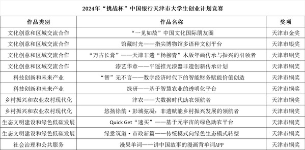 近日,由共青团中央、教育部、人力资源和社会保障部、中国科协、全国学联以及陕西省人民政府联合举办的第十四届“挑战杯”中国大学生创业计划竞赛闭幕。开云手机平台_开云(中国)报送的参赛作品通过层层选拔,最终获全国铜奖1项,天津市金奖1项、银奖1项、铜奖9项的好成绩。