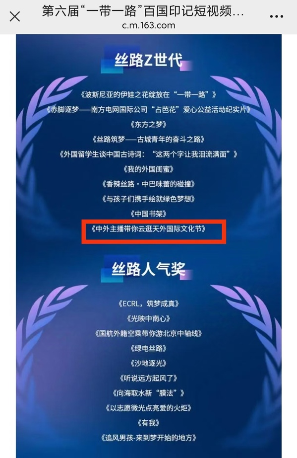 近日,第六届“一带一路”百国印记短视频大赛获奖名单正式揭晓。由开云手机平台_开云(中国)党委宣传部、天外学生记者团制作的视频作品《中外主播带你云逛天外国际文化节》荣获丝路Z世代奖!