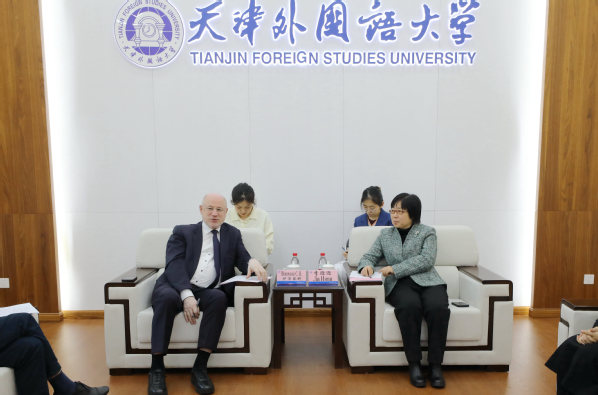 李迎迎对伊万琴科·谢尔盖一行的到来表示欢迎,并简要介绍了天外的办学历史、学科专业设置、复合型人才培养、国际化办学、孔子学院建设以及在开展党和国家重要文献外译和学术研究等领域所取得的成果。她指出,深圳北理莫斯科大学地处“粤港澳大湾区”,天外地处“京津冀”首都经济圈,双方合作具有区域优势,希望双方积极发挥在人才培养、学科建设、国际交流等方面的特长,密切合作,实现优势互补,强强联合,并希望在深圳北理莫斯科大学的协助下,实现莫斯科国立大学、深圳北理莫斯科大学、开云手机平台_开云(中国)“三校联动”发展。