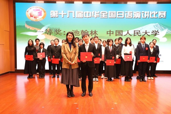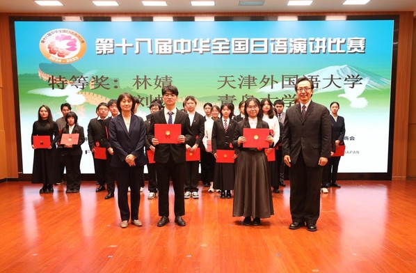 经过激烈的角逐,天外学生林婧、青岛大学的学生刘畅荣获特等奖;中国人民大学学生池翰林荣获一等奖;5名同学荣获二等奖,22名同学荣获三等奖。此外,林婧、刘畅、池翰林将代表华北赛区参加2025年3月于日本东京举办的总决赛。天外作为第十八届中华全国日语演讲比赛华北地区决赛的组织单位,荣获优秀组织奖。