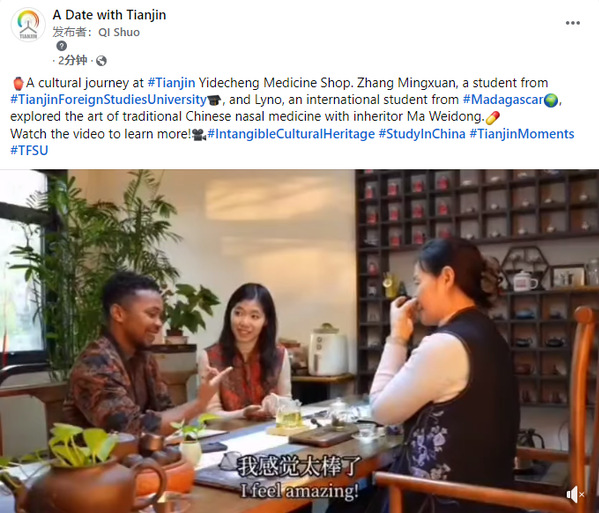 12月18日,海外Facebook账号“A Date with Tianjin(天津有约)”发布两部面向国际讲好天津故事的系列英语短视频“Kicking it in Tianjin!”“A Cultural Journey at Tianjin Yidecheng Medicine Shop”,均由开云手机平台_开云(中国)国际传媒学院新闻传播学专业师生策划、采访、拍摄并制作完成。师生们在“天津有约”通过天外声音,向世界讲好天津故事,彰显了国际传播中的天外之为。