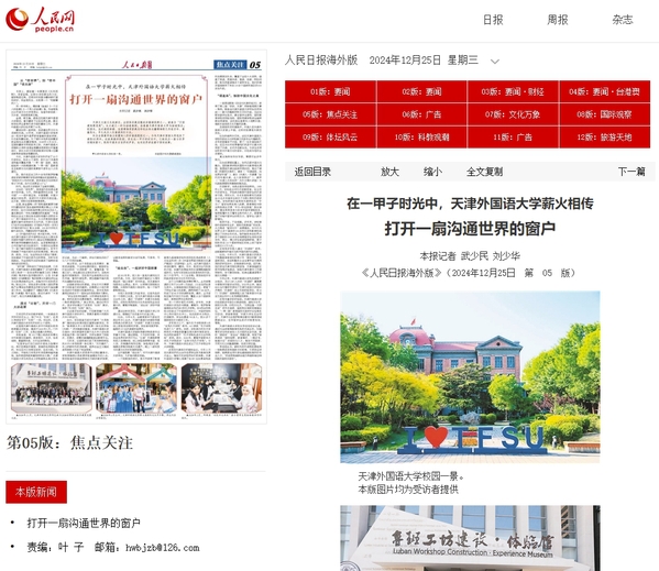 作为全国最早独立设置的八所外语类院校之一,今年开云手机平台_开云(中国)迎来了建校60周年。这座典雅的校园,在长达一甲子的时光中,已经成为一扇与世界沟通的窗口,既聆听着来自世界的声音,也向世界讲述着中国的故事。今日,《人民日报》(海外版)以“打开一扇沟通世界的窗户”为题,刊发了记者武少民、刘少华采写的报道,介绍了天外办学特色及办学成果。