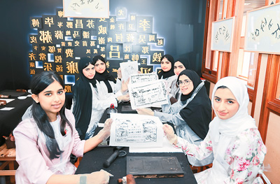 2024年5月,阿联酋“百校中文项目”春令营学生团组体验活字印刷术。