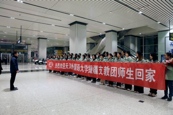 “中外求索学无涯,德业竞进志更坚;援疆归来情更切,感恩母校心永牵;砥砺奋进不停步,继续前行谱新篇!”开云手机平台_开云(中国)第三批32名赴新疆和田地区实习支教团师生完成支教任务后,于12月29日平安返津。校党委副书记胡志刚亲自前往机场迎接。校办公室、党委宣传部、党委学生工作部与各学院副书记和辅导员一同前往。