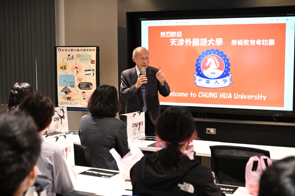 团组抵达后,台湾中华大学校董林政则先生致欢迎辞,对天外一行的到来表示热烈欢迎,并对市台办长期以来对两校交流合作的支持表示诚挚的感谢。林政则详细介绍了台湾中华大学的发展历程和办学成果,展望了未来两校在深化共识、加强交流、拓展合作方面的广阔前景。