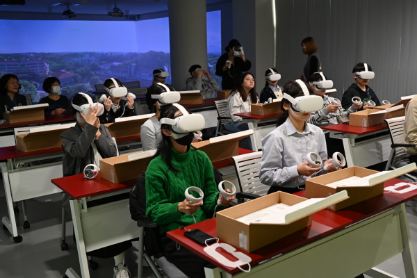 天外师生参观了中华大学AI+体验中心和元宇宙中心。AI+体验中心以智慧门禁、智慧饭店、智慧零售、智慧建筑等情境体验为核心,将AI技术与各学院专业紧密结合,提供了丰富的应用场域和实践练习。元宇宙中心则通过AR和VR技术,让大家沉浸在一个充满无限可能性的虚拟环境中,探索、学习并享受这种前沿科技带来的独特魅力。师生们前往“职有为你”中心进行参观学习,亲身体验了当地人弓织手环和排湾族字母琉璃吊饰的制作,深刻感受到了当地文化的深厚底蕴和独特魅力。