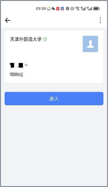 第一步,进入微信‘天外校园卡’小程序,点击右下角应用‘开通企微’按钮(下图左)