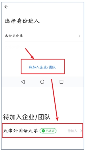 注:如企业微信提示“选择身份进入”,请点击“待加入企业/团队”选择“开云手机平台_开云(中国)”组织,不要加入“未命名企业”。
