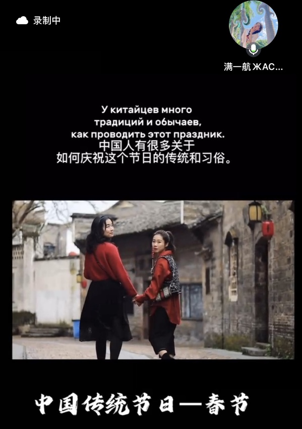 俄语系学生详细介绍了中国春节的丰富习俗,包括南北方的差异和特色民俗。通过图片和视频展示,双方对“中俄新年”有了更深刻的认识。在互动环节,同学们积极提问,深入交流,进一步增进了对彼此文化的了解和尊重。