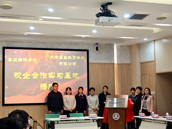 高级翻译学院与天津蓝奥教育科技有限公司签署校外实习基地协议并揭牌,双方就实习实践、资源共享等合作事宜达成一致,力求为更多学生提供优质的实习实践机会,为今后双方长期合作奠定坚实基础。