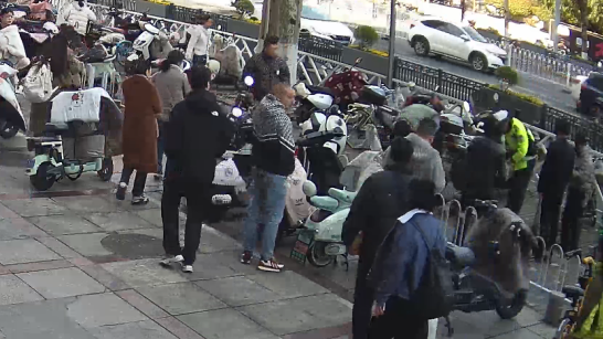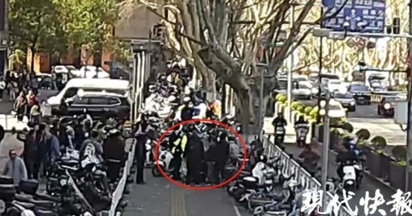 一名行人停放电动车时猝然倒地,