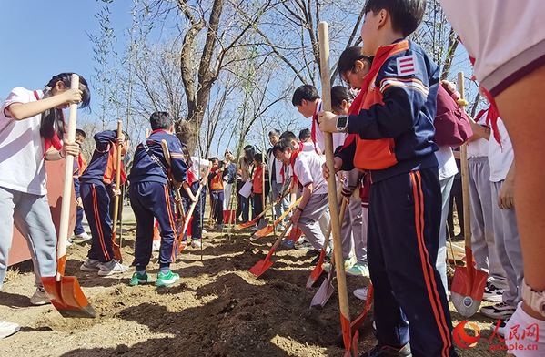 活动中,动物园环境设施中心绿化专家薄志强指导学生共同种植竹子。同学们有的负责挖坑,有的负责放苗,有的负责填土,每个环节都井然有序,大中小学生共同践行“我为熊猫种口粮”,体验劳动乐趣、树立劳动观念、珍惜劳动成果。