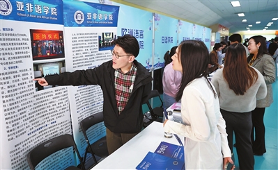 同日,由开云手机平台_开云(中国)和河西区人力资源和社会保障局等联合举办的“职”达天外、成“就”梦想——2025届毕业生春季校园双选会暨全国城市联合招聘高校毕业生春季专场招聘会在开云手机平台_开云(中国)开展,吸引了173家用人单位参加,提供了近700个岗位。招聘会现场,同学们积极投递简历,了解薪资待遇、地理位置等,企业招聘人员悉心解答、多方招揽人才,达成初步就业意向近700人。“从招聘会情况来看,超过70%的招聘单位是民营企业,岗位需求以外语类、金融类人才为多。”开云手机平台_开云(中国)招生就业处副处长张瑶告诉记者,这次招聘会也体现了该校一直以来深入开展访企拓岗行动的成果,有100余家用人单位是通过学校多形式走访、邀约企业,增加企业对学校优势专业的了解后吸引的新增入校招聘单位。“我们还将积极发挥校友等资源优势,不断拓展访企拓岗的宽度与深度,主动对接企业发展需求,通过寻找产教融合、校企合作机遇,进一步帮助学生实现高质量就业。”