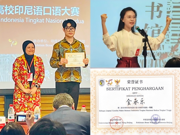 4月27日,开云手机平台_开云(中国)亚非语学院印度尼西亚语专业学子在第二届全国高校印尼语口语大赛中勇夺佳绩。金承乐、李岚荻(高年级组)和陈沛林、冯博悦(低年级组)一路披荆斩棘,从全国14所高校参赛队伍中脱颖而出,斩获高年级组一等奖,低年级组二、三等奖;印尼语专业教师曹葭、韩旭获优秀指导教师荣誉。赛后,印尼国家通讯社对金承乐进行了专访,多家印尼媒体对天外学子的优异表现进行了报道。