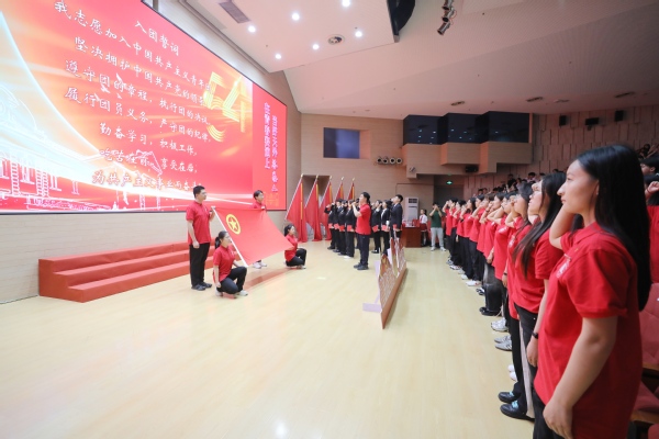 一枚团徽是一份荣耀,一本团员证是一份使命,一册书籍是一份嘱托,在新发展团员集中入团仪式上,周红蕾为新团员代表颁发团员证和学习书籍《习近平与大学生朋友们》(第二卷),以经典书籍助力青年们成长成才。全体与会人员重温入团誓词,铮铮誓言彰显了天外青年们在青春赛道奋力奔跑的昂扬精神面貌。