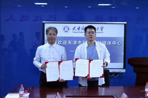 5月27日,和平区融媒体中心一行到访天外国际传媒学院进行访问交流。学院领导班子成员及教师代表与来访嘉宾举行了战略合作协议签约仪式,双方就实习实践、项目共建等内容进行了深入交流。