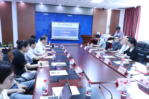 和平区融媒体中心一行参观了学院虚拟演播室、智能融媒体实验室等教学科研平台,通过观看学院师生成果宣传片了解了国际传媒学院在教学、科研和学生实践等方面取得的丰硕成果。