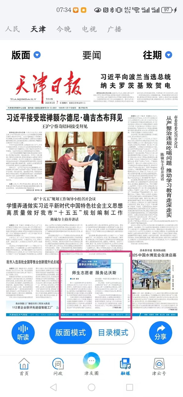 新闻来源:https://digitalnewspaper.tjyun.com/newspaper/v7.5/tjrbDetail.html?resultId=850506_19c3b73dd949747fcb521a04ca827bbe7a589f2d94df06b04817566fd50aa02b&layout=0&date=20250607