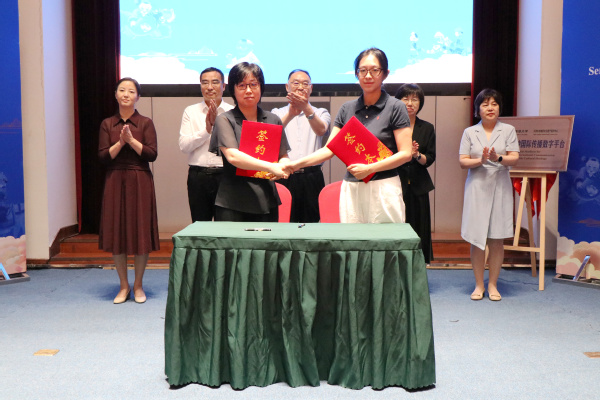 开幕式上,校长李迎迎与天津市非物质文化遗产保护中心副主任杨暘共同为“非遗多语种国际传播数字平台”揭牌,标志着非遗多语种、数字化传播迈出关键一步。同时,学校与未来电视有限公司签署战略合作协议,推动非遗内容在国际媒体平台的传播,提升非遗的国际市场影响力。