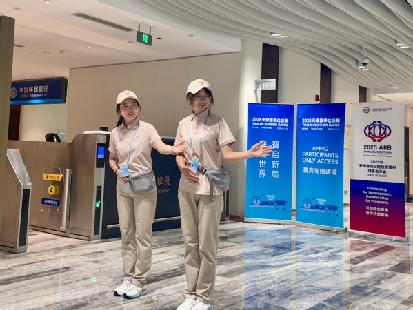 在各个论坛入口处,他们既是守护安全的“忠诚卫士”,又是洞察文化的“敏锐观察者”。核查入场权限时,他们严谨细致、一丝不苟;为嘉宾指引路线时,他们温暖贴心、关怀备至。一句简单的寒暄、一个真诚的微笑,或是为迷路的嘉宾清晰指明方向,这些看似微不足道的碎片化互动,却处处彰显着志愿者精神。在与嘉宾的交流中,他们真切地感受到了达沃斯精神所蕴含的多元与包容。