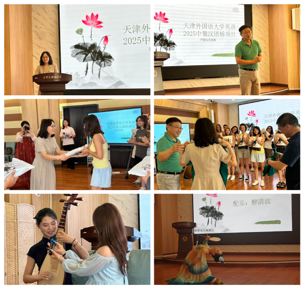 首日,英语学院为代表团举行了温馨而隆重的欢迎仪式,英语学院院长刘宏伟做了热情洋溢的欢迎辞,并为葡萄牙的青年学生们赠送了中华传统服饰;里斯本大学孔子学院中方院长王锦程对学院的精心筹备表达感谢,并回赠了孔院设计的文化T恤;学生志愿者们献上精彩的文艺表演,点燃了中葡学生交流互动的热情。