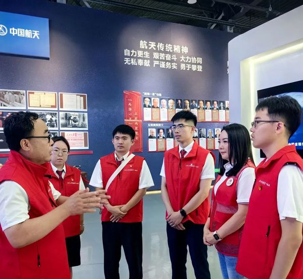 ▲7月30日,中国民航大学教师在中国航天科技集团五院天津基地为四十三中学、芦台第一小学师生宣讲“高质量发展背后的故事”。(摄影 孙玉娇)
