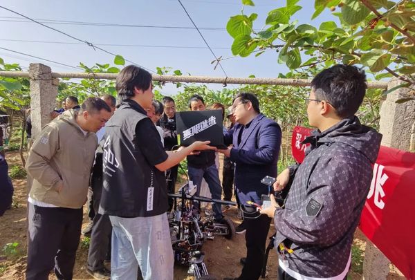 ▲4月23日,天津理工大学教师为陕西宝鸡眉县猕猴桃果农及农机商讲解该校自主研发的机器人智能授粉技术,服务国家战略,以创新科技赋能乡村振兴。(摄影:薛云飞)