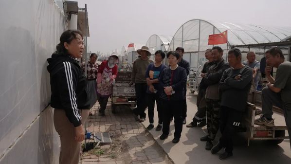 ▲4月12日,天津农学院田淑芬研究员指导东丽区葡萄种植户应对大风天气开展农业设施加固,保住了400亩葡萄大棚免受损失。(摄影:王晓沛)