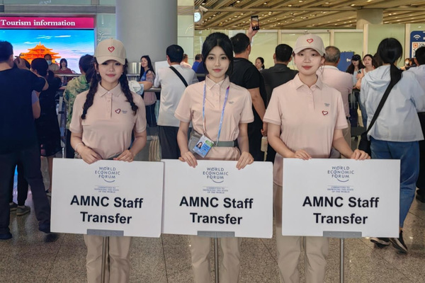 ▲6月20日,天津财经大学80名志愿者投入到第十六届夏季达沃斯论坛的交通保障工作中,他们以双语能力与温暖笑容迎接全球来宾,举手投足间尽显礼仪之邦的文明风范。(摄影:杨雪松)