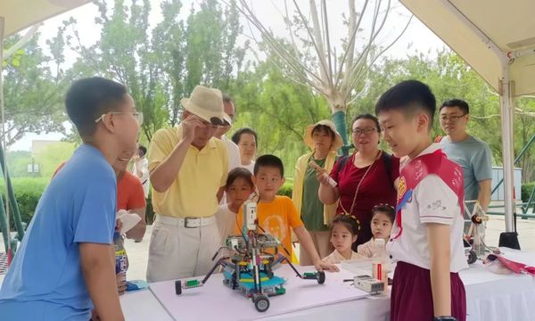 ▲5月31日,天津市和平区万全小学在银河广场开展科普讲解活动。(摄影:纪坤)