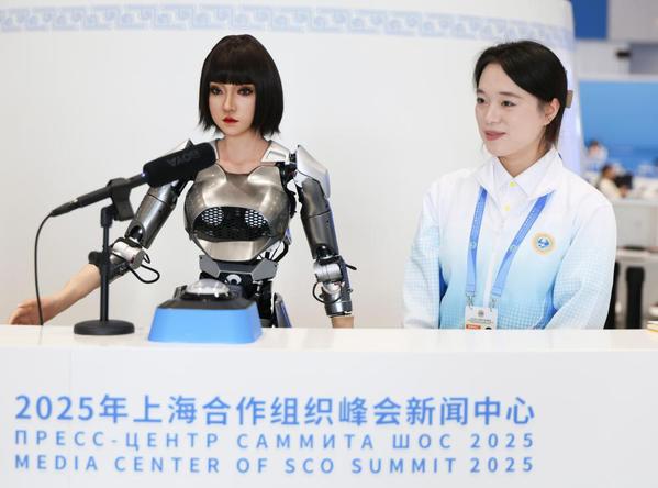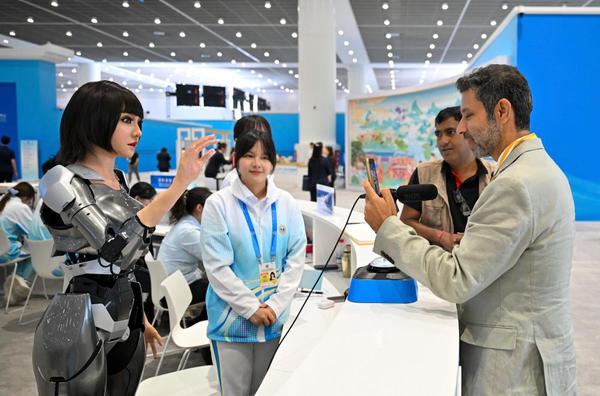 【相约上合】新华社报道上合峰会中的青春力量,我校志愿者在嘉宾接待、证件注册、物资分发等岗位上服务,在新闻中心与机器人一起“比心”留影。