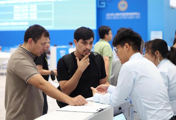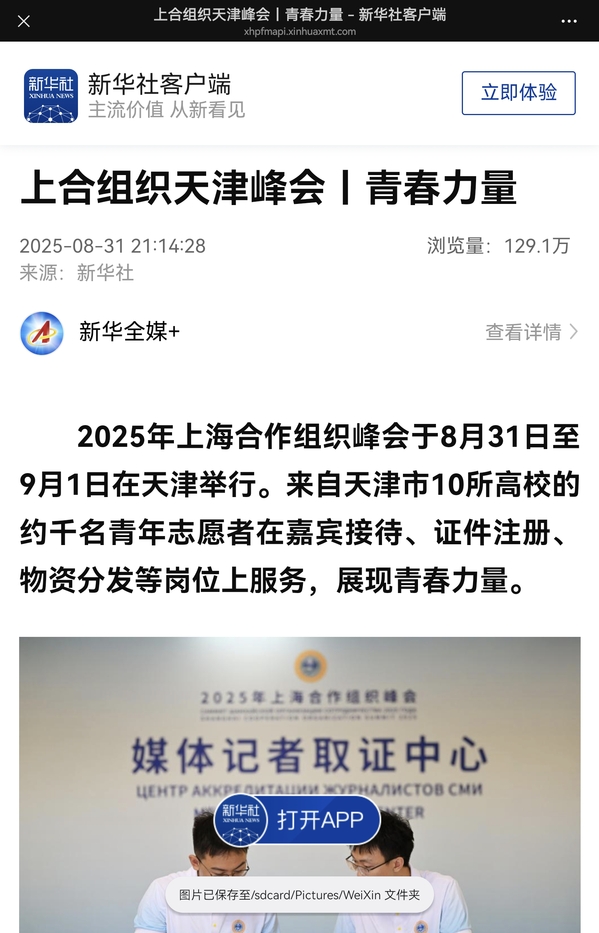 2025年上海合作组织峰会于8月31日至9月1日在天津举行。来自天津市10所高校的约千名青年志愿者在嘉宾接待、证件注册、物资分发等岗位上服务,展现青春力量。