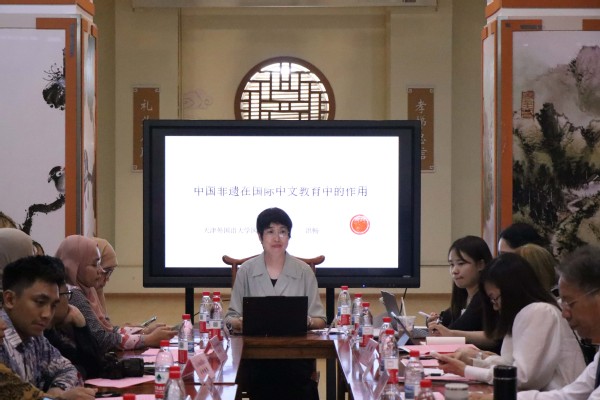 帕查查兰大学汉语系安纳士老师结合教学实际,提出了印尼当前汉语教学中面临的具体问题,如语音识别准确性、文化语境融入、汉语教师不足等问题,希望与中方共同探讨解决方案。印尼代表团同时表达了深化合作愿景——希望进一步加强与天外的合作,除持续推动教师来华进行语言文化培训外,期待拓展学生交流渠道,欢迎天外学生赴印尼实习支教,也希望更多印尼学生来华攻读学位。