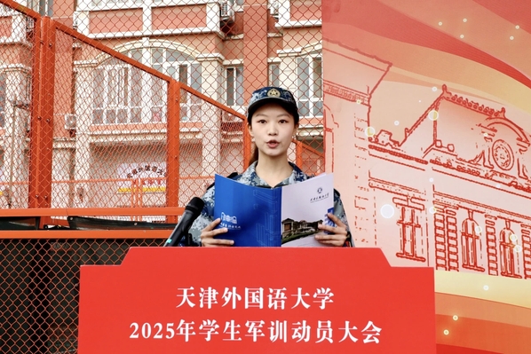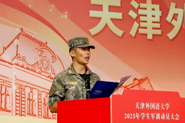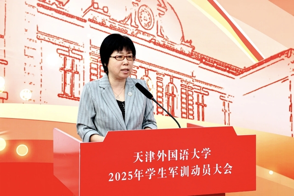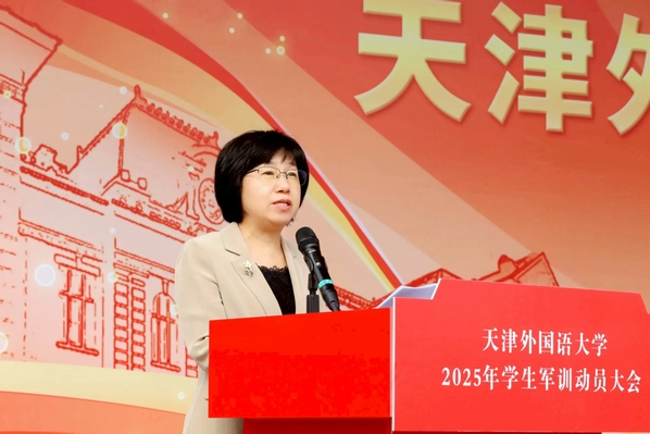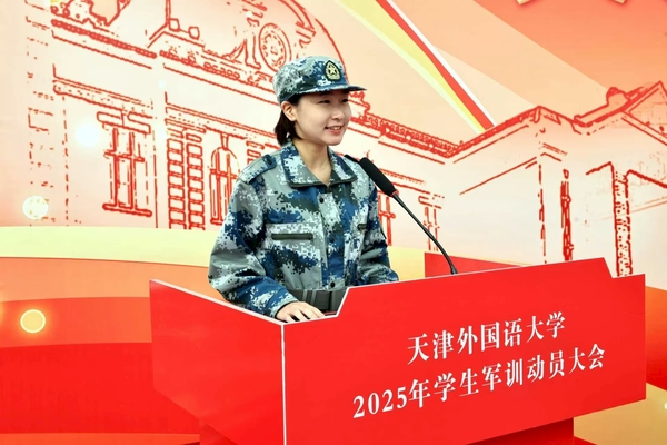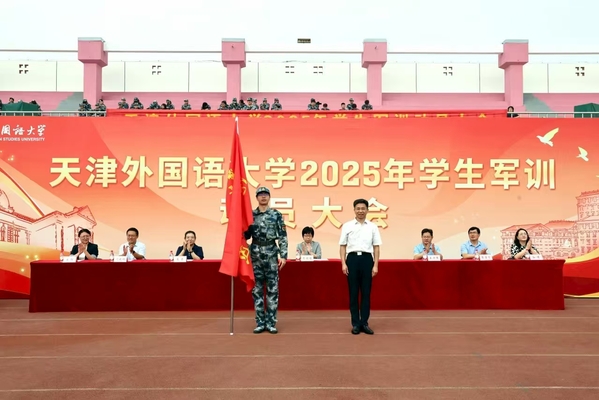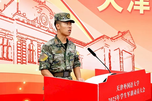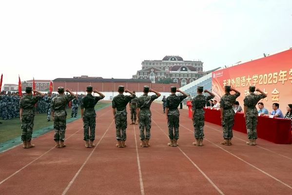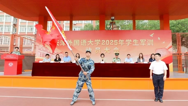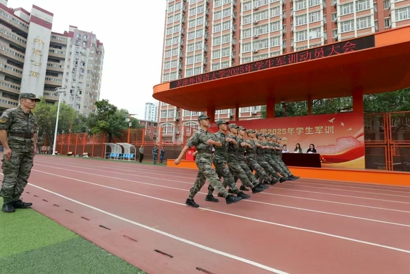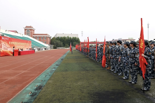 周红蕾、李迎迎代表学校党委向承训部队教官表示热烈的欢迎和诚挚的感谢。她们指出,今年是中国人民抗日战争暨世界反法西斯战争胜利80周年,弘扬伟大抗战精神、凝聚青春挺膺担当是军训工作的精神内涵,也是爱国主义教育的必修课。她们对全体参训学员提出要求,希望大家筑牢思想根基,深刻认识军训的重要意义,学习人民军队的优良传统和顽强作风,强化纪律意识,把军训中塑造的坚韧品格转化为讲述中国故事的底气和力量;要锤炼过硬本领,踊跃投身军训实践,以参军入伍的天外优秀学子为榜样,苦练军事技能,厚植家国情怀;要淬炼团队精神,增强集体主义观念和团队意识,展现新时代青年积极向上、勇于挑战的良好精神风貌。
