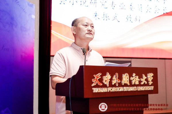 (中国)中外语言文化比较学会会长、浙江大学教授吴笛在致辞中表示,非常高兴与各位学者在天津相聚,共同探讨“小说研究的当下任务与外语学科建设”这一主题。他指出,中国文化建设与对外交流为比较文学与小说研究提供了丰厚资源。近年来,学会在各方支持下积极开展学术活动与赛事,如“求是杯”诗歌创作与翻译大赛等,吸引了众多青年学子参与,对校园文化建设发挥了积极作用。他强调,小说作为跨文化的重要文学体裁,承载着人类共同的精神追求,期待通过本次研讨会深化学术交流,推动学科发展,谱写文明和谐共生的新乐章。